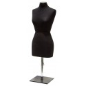 Manichini donna con misure ridotte a 1/2 rispetto alle taglie ordinarie. Costruito su taglia base 42. Rivestito tela poliestere nera. Per scuole, provini, vetrine ecc. Piedistallo in metallo regolabile in altezza.